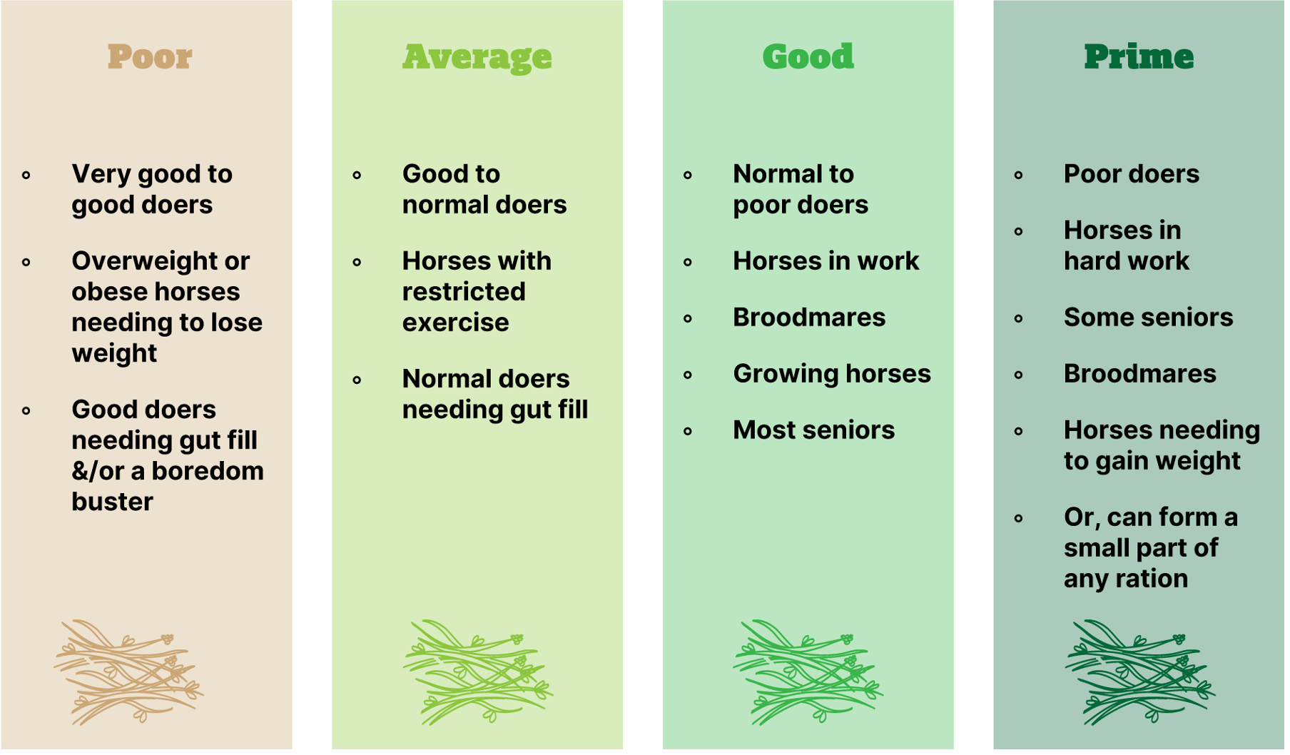 Use the hay quality graphic to align what you see with what the horse needs: